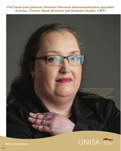 Prof Sarah-Jane Johnston (Position: Research Internationalisation Specialist at Unisa, Former, Head: Research and Graduate Studies, CSET)