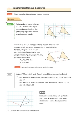 Soal 1 Untuk ∆ABC dan ∆DEF pada Contoh 1, jawablah pertanyaan berikut ini.