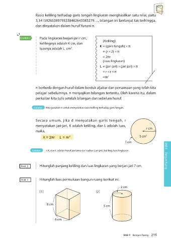 Catatan r, K, dan L adalah huruf pertama dari radius (jari-jari), keliling, luas lingkaran. │ BAB 6