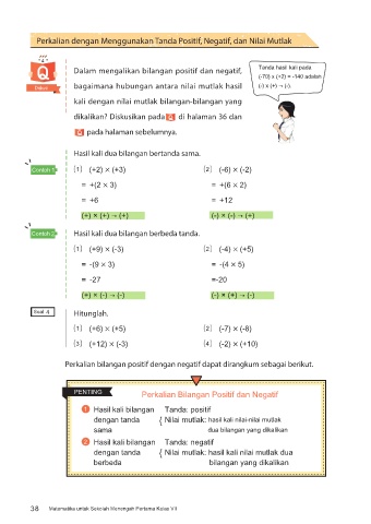 Perkalian dengan Menggunakan Tanda Positif, Negatif, dan Nilai Mutlak