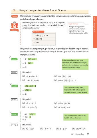 Contoh 1 5 + (-2) × 4 Dalam melakukan hitungan yang