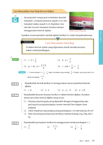 PENTING               Cara Menyatakan Hasil Bagi                             Aljabar