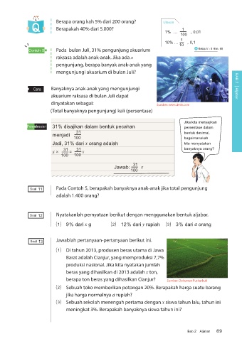 Contoh 5    Pada  bulan Juli, 31% pengunjung akuarium                    Kelas V - II Hlm. 60