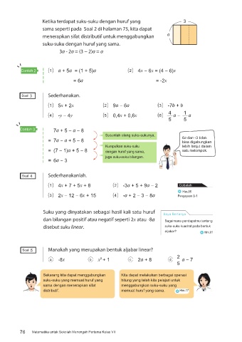 = (7 – 1)a + 5 – 8 dengan huruf yang sama, satu kelompok.