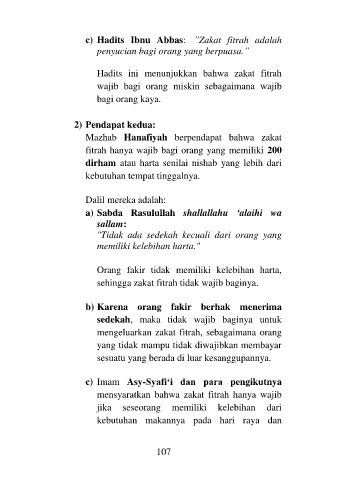 c) Hadits Ibnu Abbas: ”Zakat fitrah adalah