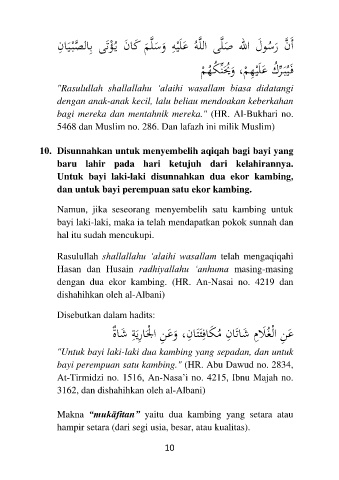 10. Disunnahkan untuk menyembelih aqiqah bagi bayi yang