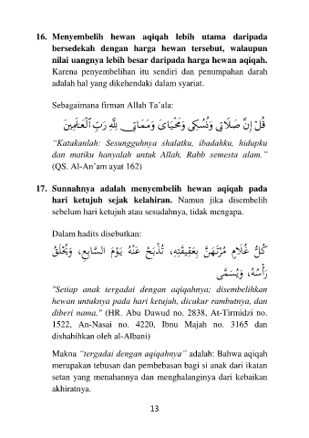 16. Menyembelih hewan aqiqah lebih utama daripada