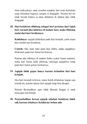 19. Aqiqah tidak gugur hanya karena terlambat dari hari