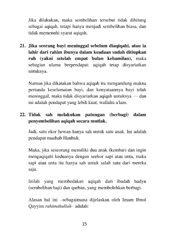 21. Jika seorang bayi meninggal sebelum diaqiqahi, atau ia