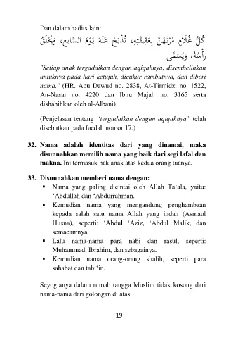 33. Disunnahkan memberi nama dengan: