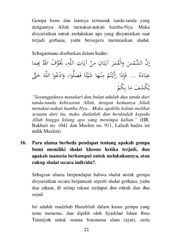 16. Para ulama berbeda pendapat tentang apakah gempa