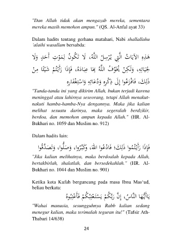 Dalam hadits tentang gerhana matahari, Nabi shallallahu