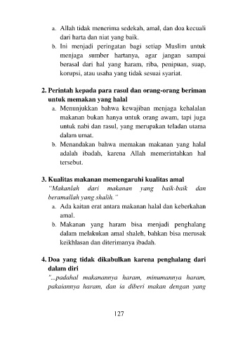 a. Allah tidak menerima sedekah, amal, dan doa kecuali