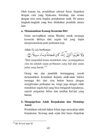 "Dan janganlah kamu mendekati zina; sesungguhnya