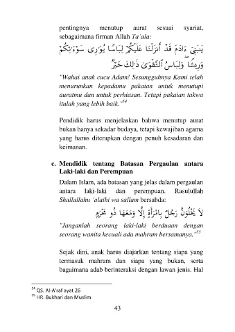 Pendidik harus menjelaskan bahwa menutup aurat