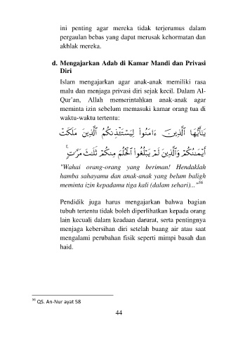 malu dan menjaga privasi diri sejak kecil. Dalam Al-