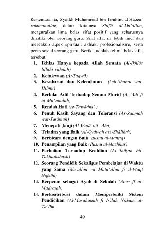 rahimahullah, dalam kitabnya Shifāt al-Mu„allim,