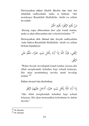 "Wahai Aisyah, bersikaplah lemah lembut, karena jika