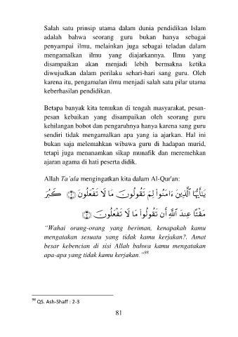 mengamalkan ilmu yang diajarkannya. Ilmu yang