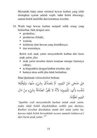 24. Wajib bagi hewan kurban menjadi milik orang yang