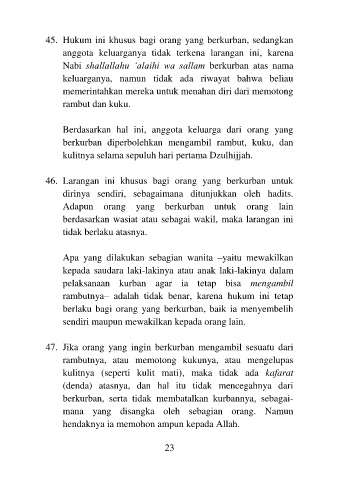 45. Hukum ini khusus bagi orang yang berkurban, sedangkan