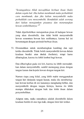 51. Disunnahkan untuk membaringkan kambing dan sapi