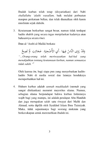 3. Keutamaan berkurban sangat besar, namun tidak terdapat