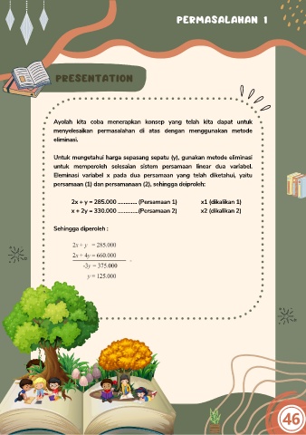 Untuk mengetahui harga sepasang sepatu (y), gunakan metode eliminasi