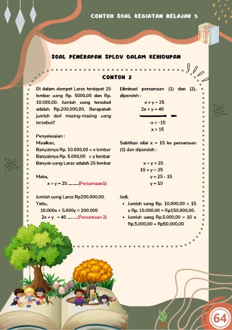 Di dalam dompet Laras terdapat 25 Eliminasi persamaan (1) dan (2),
