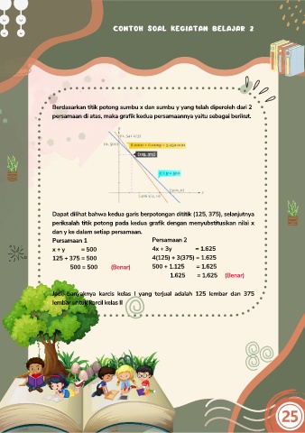Dapat dilihat bahwa kedua garis berpotongan dititik (125, 375), selanjutnya