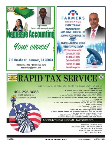 Your choice! Your choice! Page 62 “ኢትዮጵያ ለዘላለም ትኑር“ ድንቅ መጽሔት - ሐምሌ 2012
