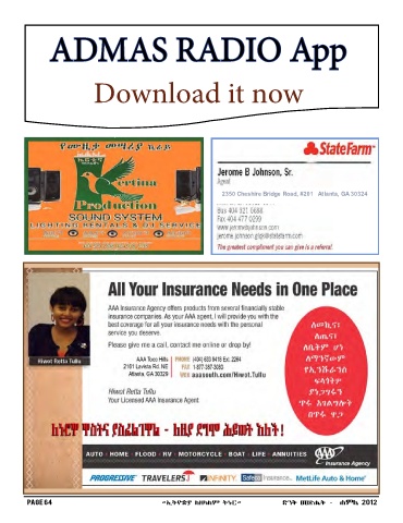 ADMAS RADIO App Download it now 2350 Cheshire Bridge Road, #201 Atlanta, GA 30324 Page 64 “ኢትዮጵያ ለዘላለም ትኑር“ ድንቅ መጽሔት - ሐምሌ 2012