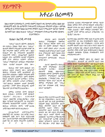 44 “ኢትዮጵያ በክብር ለዘላለም ትኑር” ድንቅ መጽሔት ግንቦት 2021 2 2 0 0 1 1 3