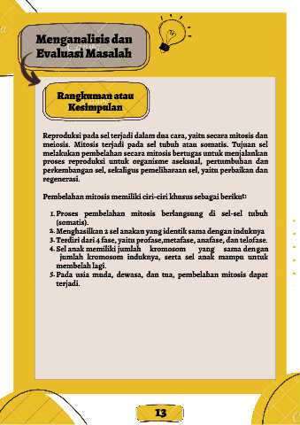 1. Proses pembelahan mitosis berlangsung di sel-sel tubuh