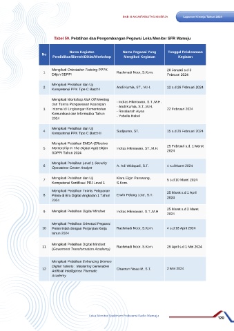 Tabel 59. Pelatihan dan Pengembangan Pegawai Loka Monitor SFR Mamuju