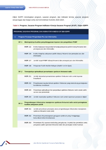 Tabel 4. Program, Sasaran Program Indikator Kinerja Sasaran Program (IKSP) Ditjen SDPPI