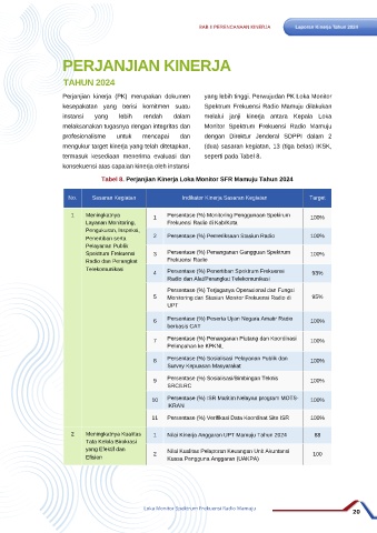 Tabel 8. Perjanjian Kinerja Loka Monitor SFR Mamuju Tahun 2024