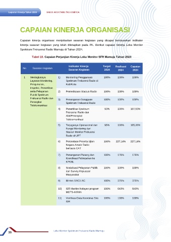 Tabel 10. Capaian Perjanjian Kinerja Loka Monitor SFR Mamuju Tahun 2024
