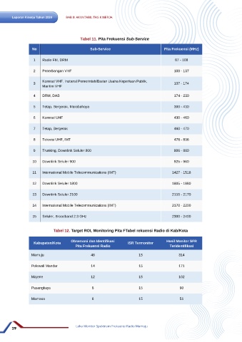 Tabel 12. Target ROL Monitoring Pita FTabel rekuensi Radio di Kab/Kota