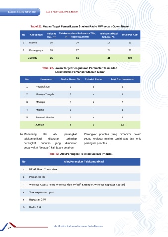 Tabel 21. Uraian Target Pemeriksaan Stasiun Radio MW secara Open Shelter