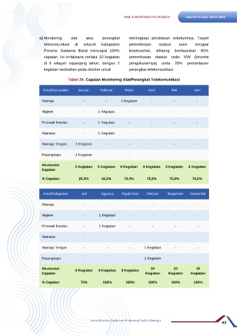 Tabel 25. Capaian Monitoring Alat/Perangkat Telekomunikasi