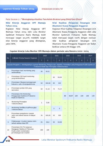 Capaian kinerja Loka Monitor SFR Mamuju dalam periode satu Renstra 2020–2024