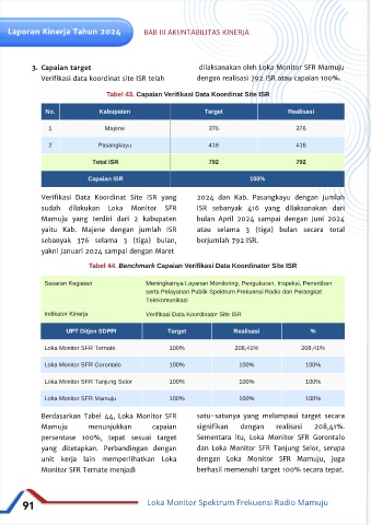 Tabel 44. Benchmark Capaian Verifikasi Data Koordinator Site ISR koordinat site ISR oleh Loka Monitor