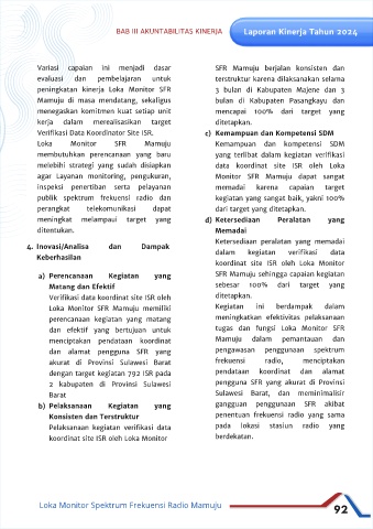 3. Capaian target dilaksanakan oleh Loka Monitor SFR Mamuju Variasi capaian ini menjadi dasar SFR Mamuju berjalan konsisten dan