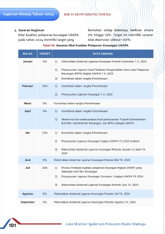 Tabel 46. Sasaran Nilai Kualitas Pelaporan Keuangan UAKPA