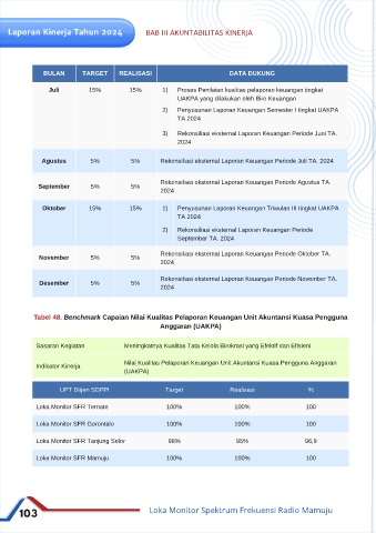 2) Penyusunan Laporan Keuangan Semester I tingkat UAKPA Monitor SFR Mamuju berhasil dan terstruktur dengan realisasi target