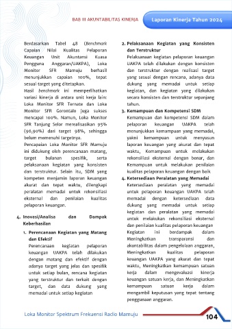 Rekonsiliasi eksternal Laporan Keuangan Periode Agustus TA. Monitor SFR Gorontalo juga sukses 3. Kemampuan dan Kompetensi SDM