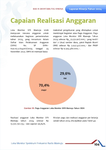 keuangan yang sesuai dengan standar Pelaporan keuangan UAKPA telah dilakukan Gambar 28. Pagu Anggaran Loka Monitor SFR Mamuju Tahun 2024