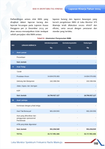disajikan dalam laporan barang dan berarti pengelolaan BMN di Loka Monitor SFR
