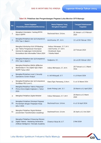diselenggarakan melalui pendidikan dapat dilihat pada Tabel 59. 10 Mengikuti Pelatihan Orientasi Pegawai Rachmadi Noor, S.Kom. 4 s.d 18 April 2024